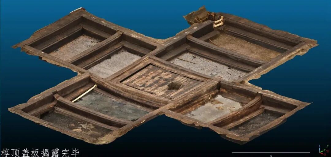 安徽淮南武王墩主墓椁室盖板揭露完毕后的情况(新华社发 安徽省文物考古研究所供图)