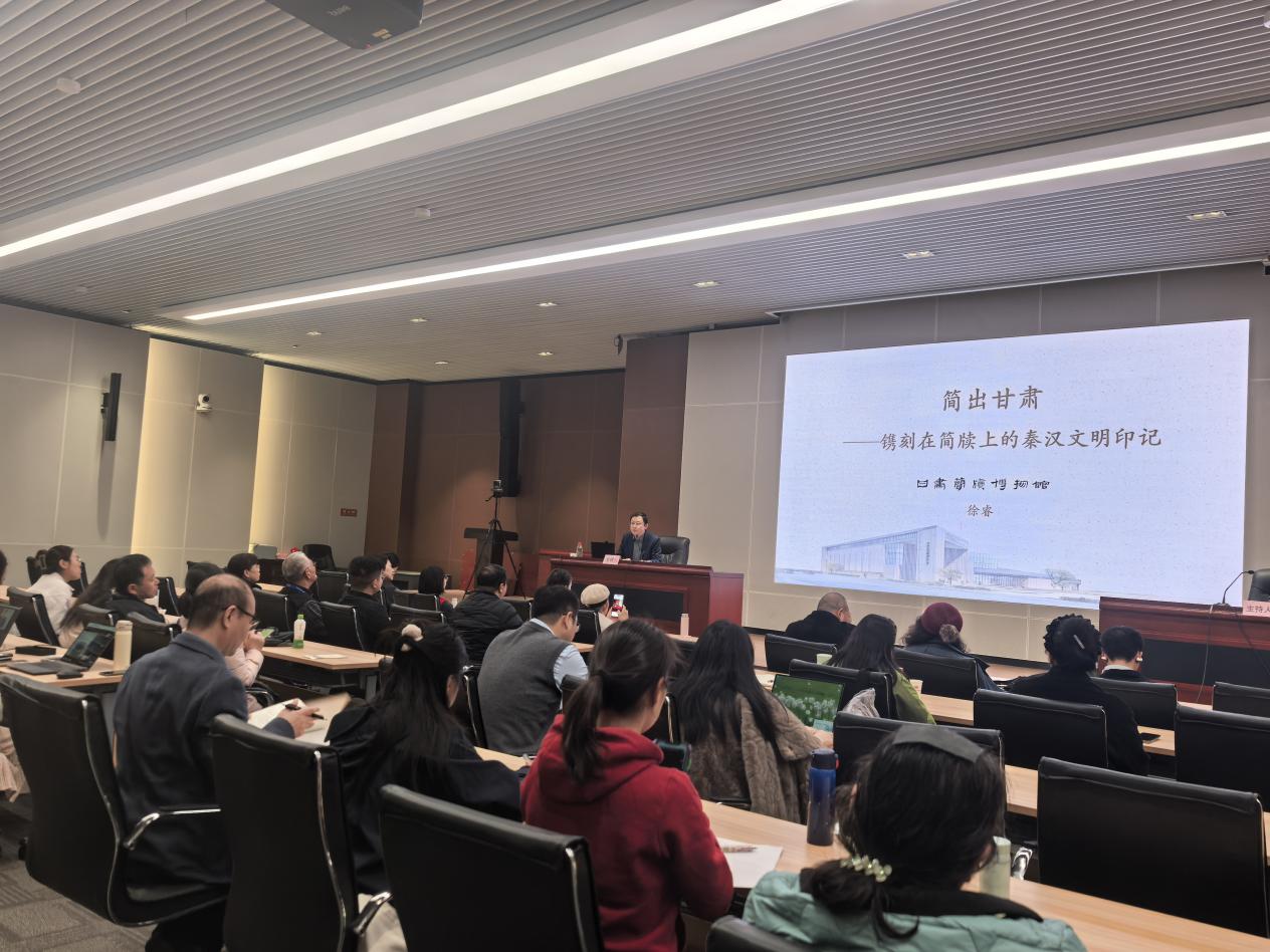 2025年11月30日,甘肃简牍博物馆副馆长、研究馆员徐睿莅临荆楚文明讲坛为观众带来了题为《简出甘肃——镌刻在简牍上的秦汉文明印记》的讲座。讲座由湖北省博物馆副馆长杨理胜主持。