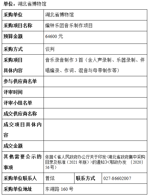 湖北省博物馆采购项目信息公告