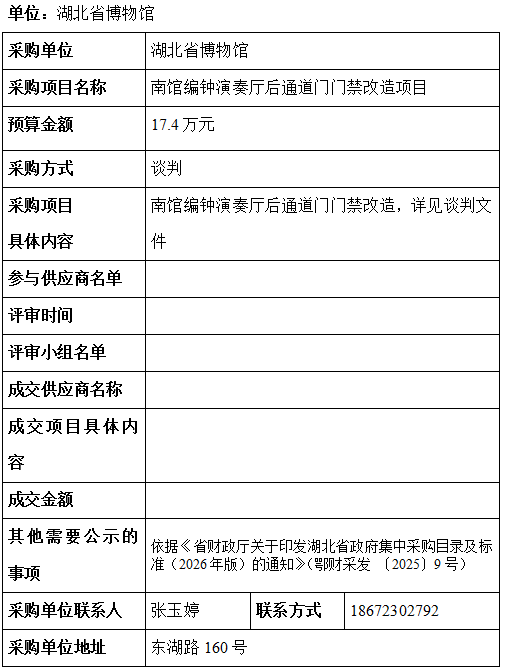 湖北省博物馆采购项目信息公告