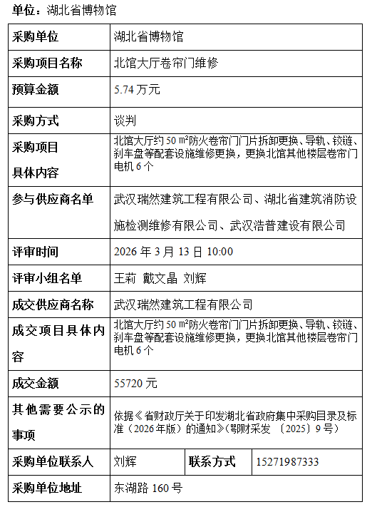 湖北省博物馆采购项目信息公告